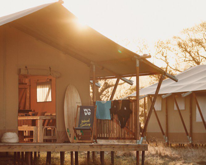 Our safari tents are designed for families, couples and groups who want something more than a campsite, without losing the magic of sleeping close to nature. Just metres from the most consistent surf break in the country, with the Clubhouse, café-bar and surf shop a few steps away. The Camp is a place to escape, connect, reset, and surf in the beautiful Bristol countryside.